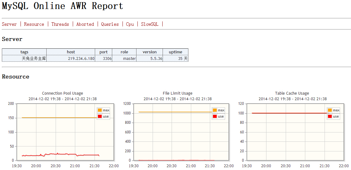 通过图表展示出数据库近期状态,以便对遇到的问题进行分析和诊断