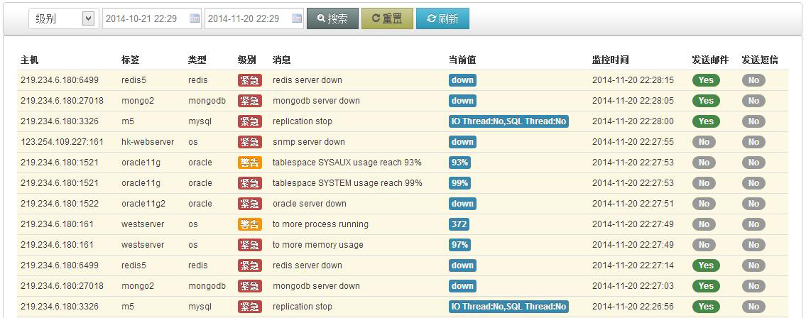 • 可视化告警系统,邮件发送告警,短信接口支持