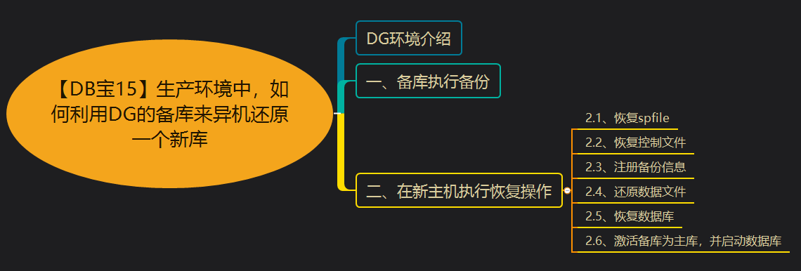 本文演示的是利用Oracle DG环境的备库执行备份,然后异机还原恢复成一个新的主库的过程。
