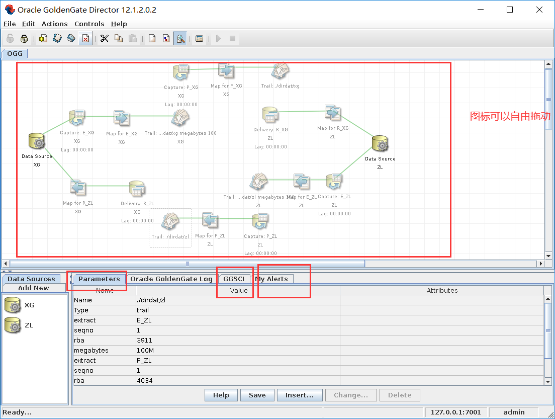 通过这个工具可以用画图的方式配置golden gate,只要正确的配置了数据源,就可以通过拖拽的方式展示一个复制过程。