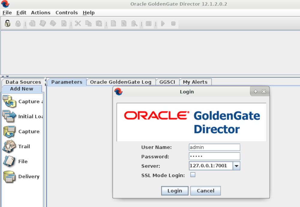 在远程桌面运行命令“/u01/ogg/Oracle/GoldenGateDirector/bin/run-director.sh”可以调出图形界面: