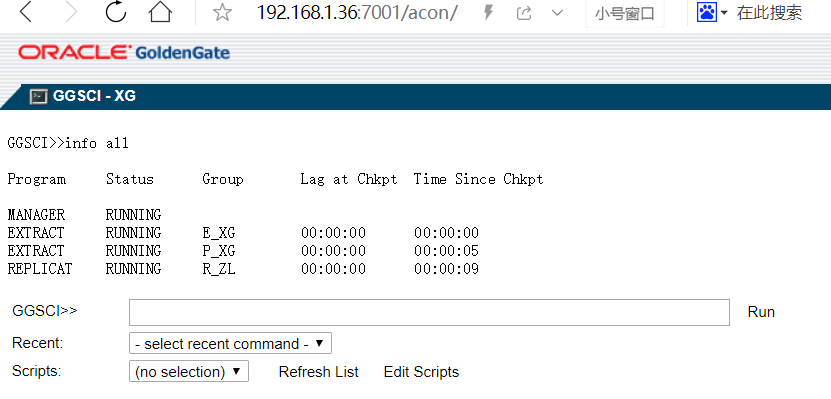 在界面上可以执行很多操作,例如执行ggsci命令: