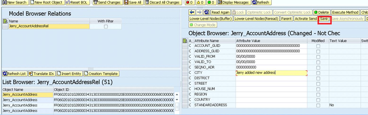 我在从Account navigate 到AccountAddress的地方加一段代码,分别存储两种方式得到的account address container object list,这个时候还没有真正取Account address,所以两个container object list里面都只有一个dummy的entry,is_handle = X