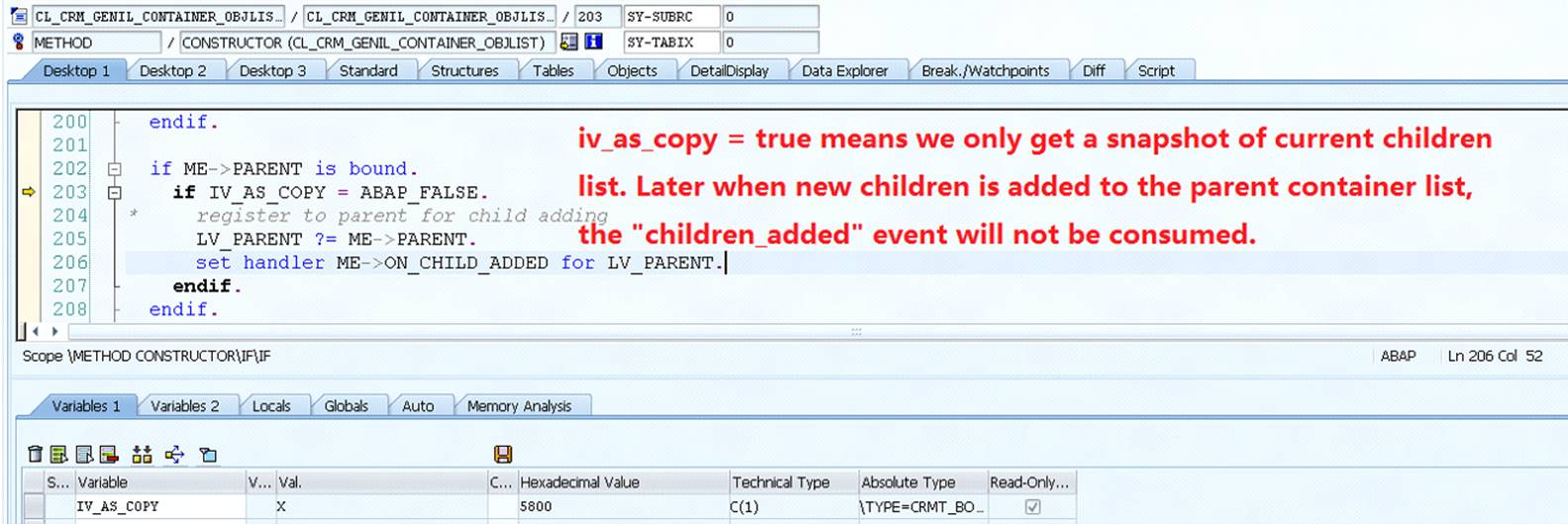 如果你使用iv_as_copy = true得到一个container object list,那么这个container object list A 只是当前parent container object的children的一个snapshot,今后parent container object 如果有新的children加进来之后,新的child不会反映到你得到的snapshot A去,因为technical上讲,你的snapshot并没有注册 parent container object的CHILD_ADDED event,因为不会被通知到。