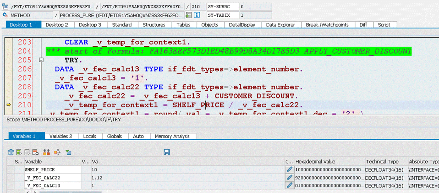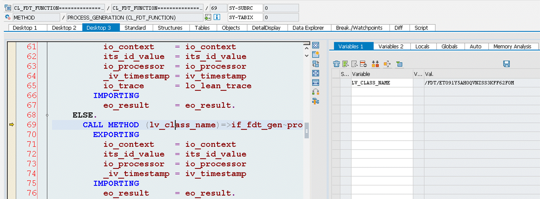 而当选择Generation mode时,因为每个BRF function都存在一个对应自动生成的ABAP class里处理该function内包含的rule.