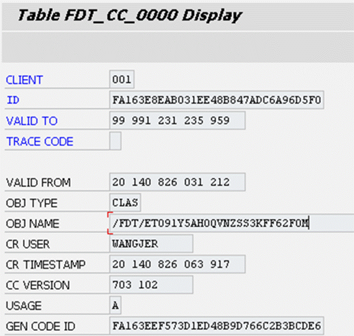 function 和generated class的对应关系维护在table FDT_CC_0000里,通过function id进行查询。