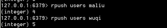 rpush:在key对应list的尾部添加字符串元素。(用法:rpush list链表名称 元素值)