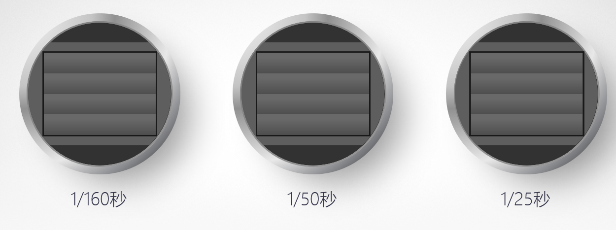 不同参数的快门区别:1/160秒闭合的很快,1/50秒中等速度,1/25秒闭合较慢!闭合速度越快,进光量越少,画面就越暗。反之,闭合速度越慢,进光量越多,画面就越亮。
