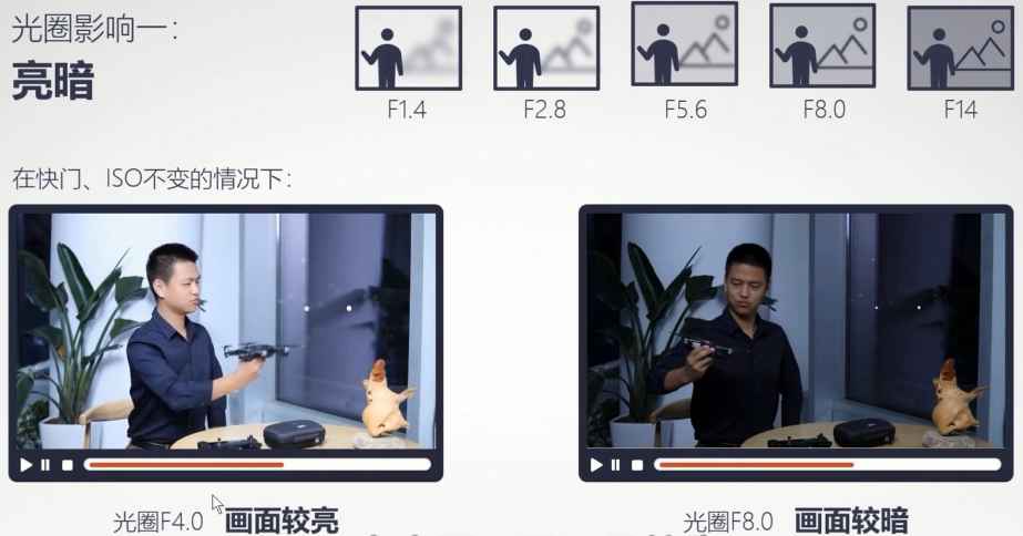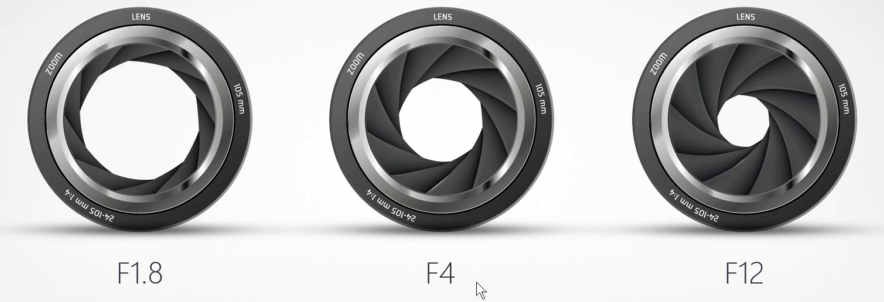 光圈:决定相机镜头打开的大小(数字越大,光圈越小,进光量越小)