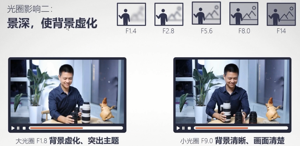- ①、需要突出主体人物时,用大光圈来虚化背景
