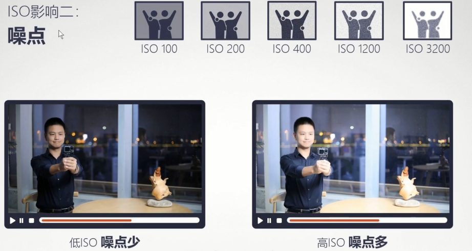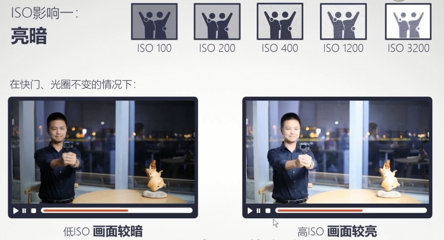 ISO:相机感光元件本身的敏感度(数字越大,感光元件对光线越敏感)
