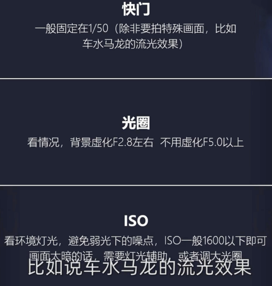 - ③、如果在LED光源下拍视频,录像的快门速度设为50的倍数可以防止频闪,如1/50