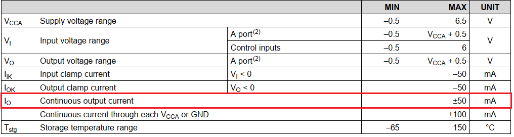 74LVC4245A 的A端IO口的持续输出最大电流可达 ±50mA
