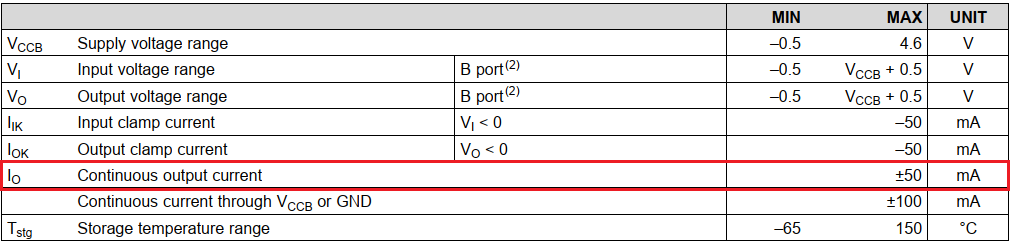 同样,74LVC4245A 的B端IO口的持续输出最大电流可达 ±50mA