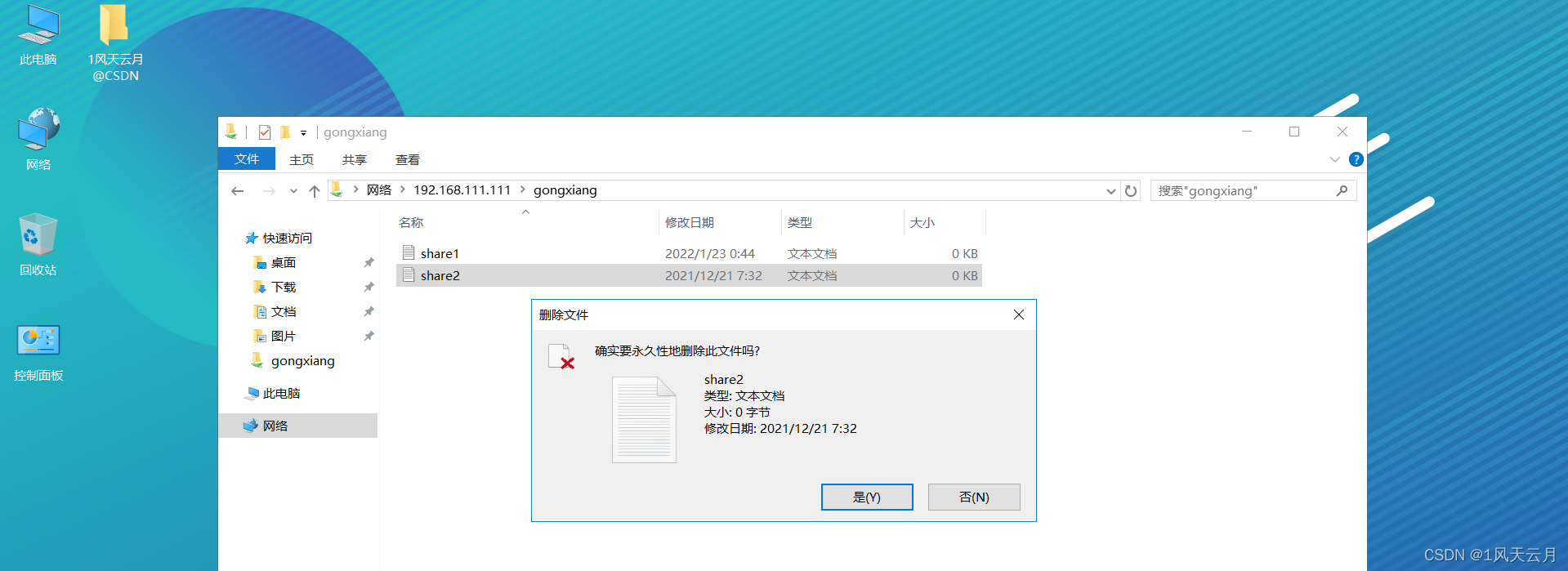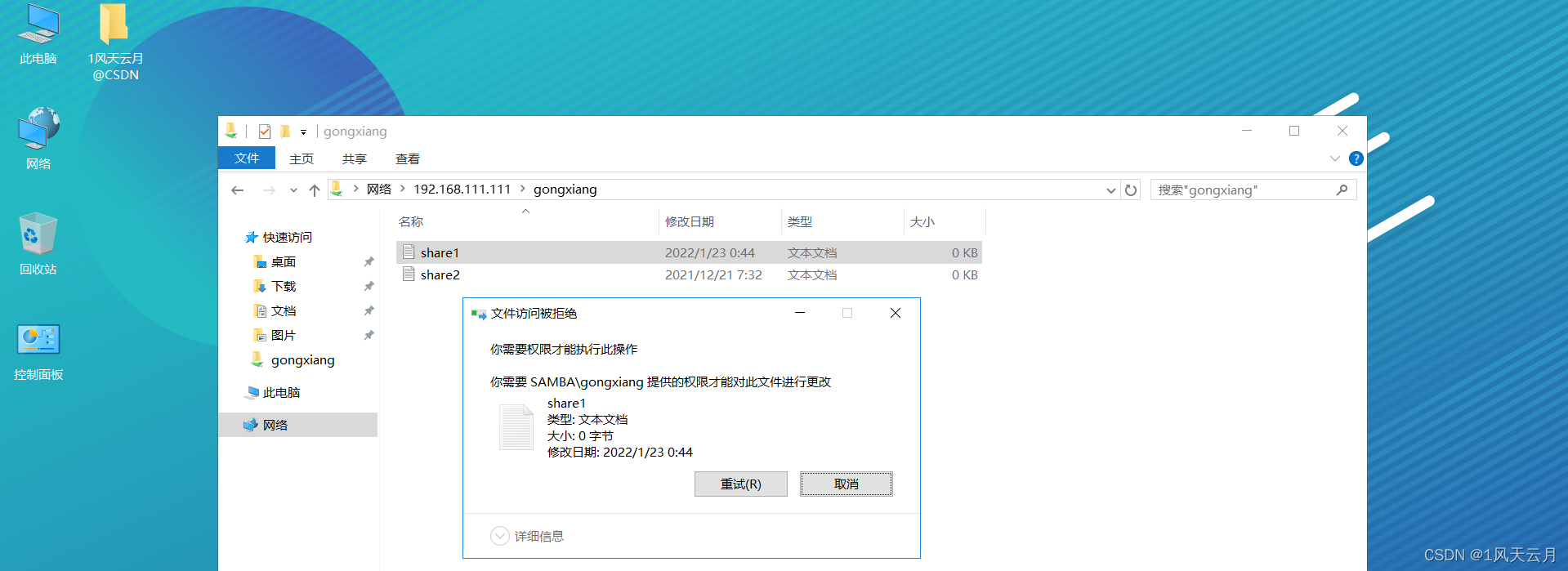 gongxiang2用户及映射的xieru和xieru2用户在访问共享服务时有读取和写入权限,可以任意修改文件内容,创建或者删除文件