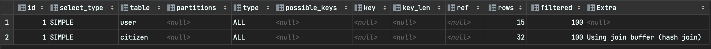 - 第一个表t1,先用ALL方式全表扫描,扫出xxx条数据