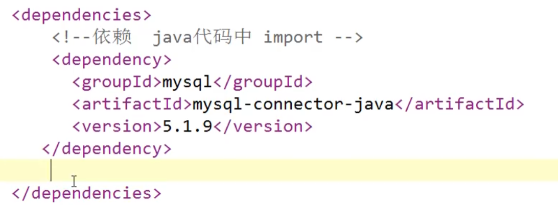 你的项目中要使用的各种资源说明,比如我的项目要使用mysql驱动。