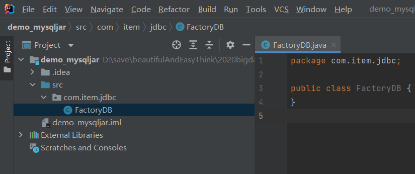 【摘要】 本课程上文链接:【JavaWeb课程复习资料(一)——idea导入mysql-connector.jar包】1、创建【工厂类】的包与类2、输入链接路径与账号密码package com.item.jdbc;public class FactoryDB { private static final String URL = "jdbc:mysql://localhost:3306/t...