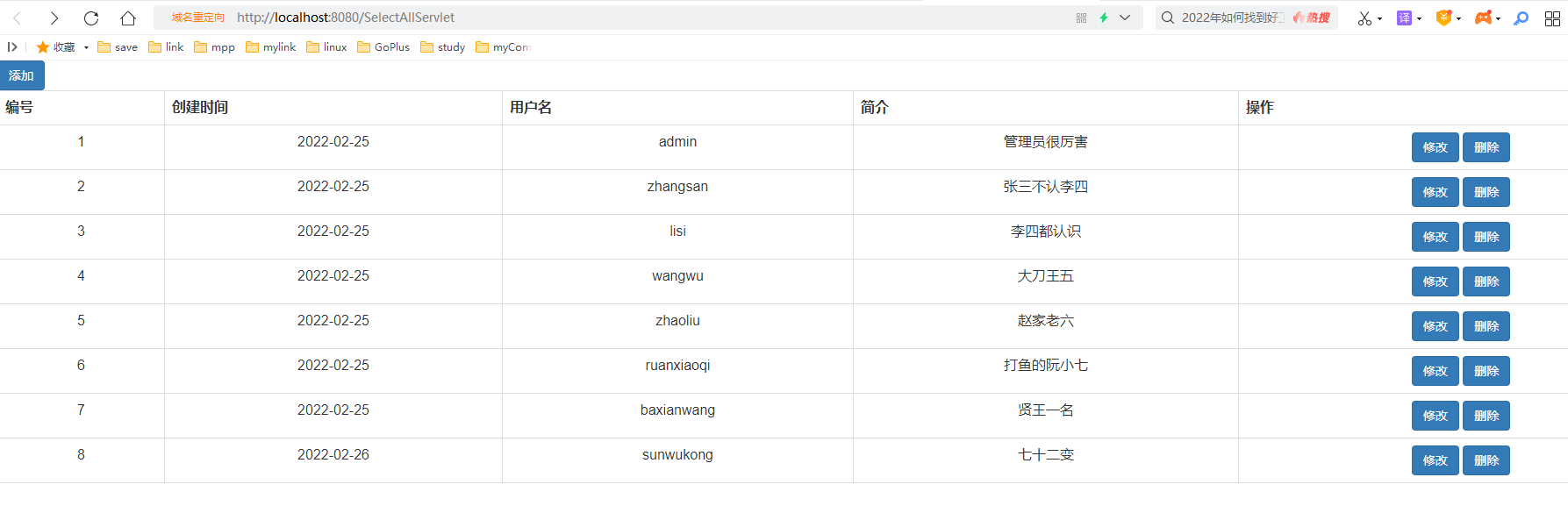 【摘要】 承接上文:JavaWeb课程复习资料(七)——select服务查询所有功能编写1、添加【AddServlet】2、添加AddServlet编码package com.item.servlet;import com.item.dao.UserInfoDAO;import com.item.daoimpl.UserInfoDAOImpl;import com.item.pojo.UserI...