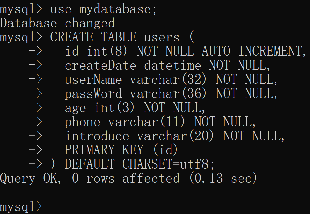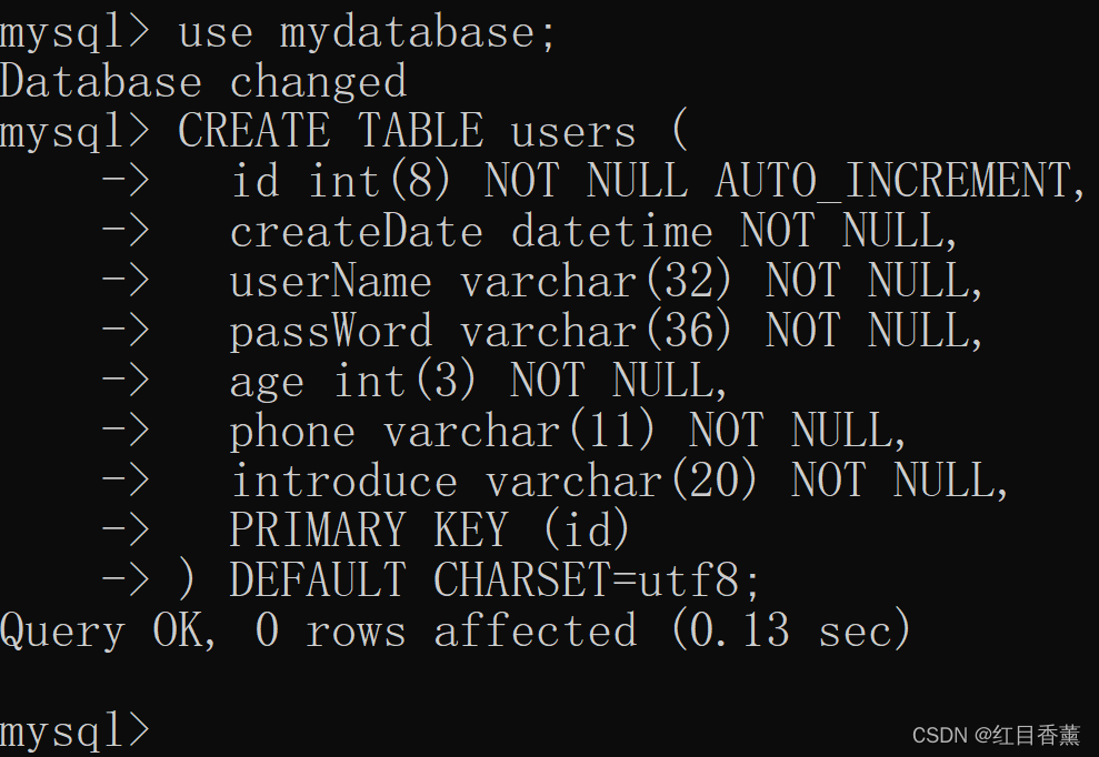 1、表需要创建在库里面,故而需要先使用你创建的数据库。