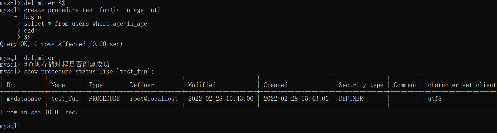 创建存储过程示例