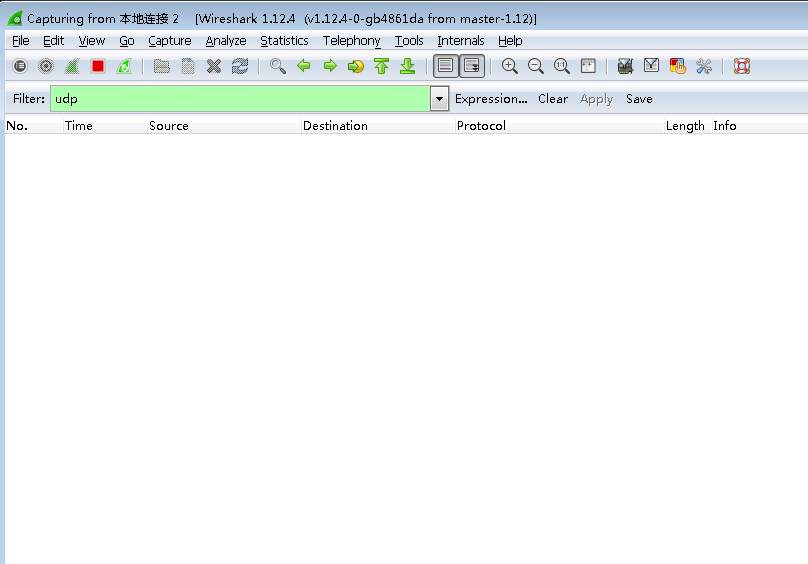 点击上图中,红色的创建按钮,并启动Wireshark抓包,与服务器端配置Wireshark相同,选择UDP协议,准备抓包