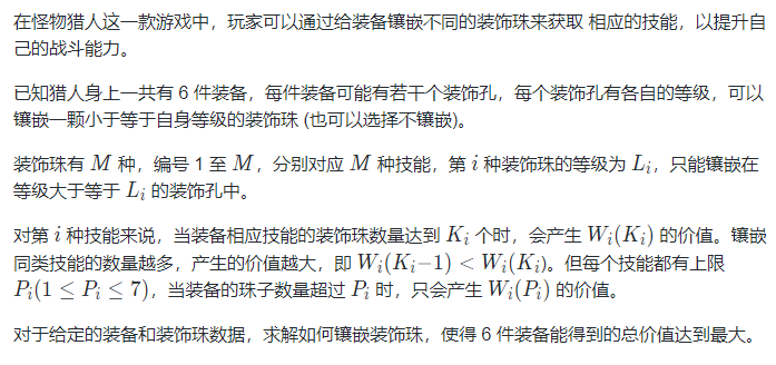 按照如下方式镶嵌珠子得到最大价值 18,括号内表示镶嵌的装饰珠的种类编号: