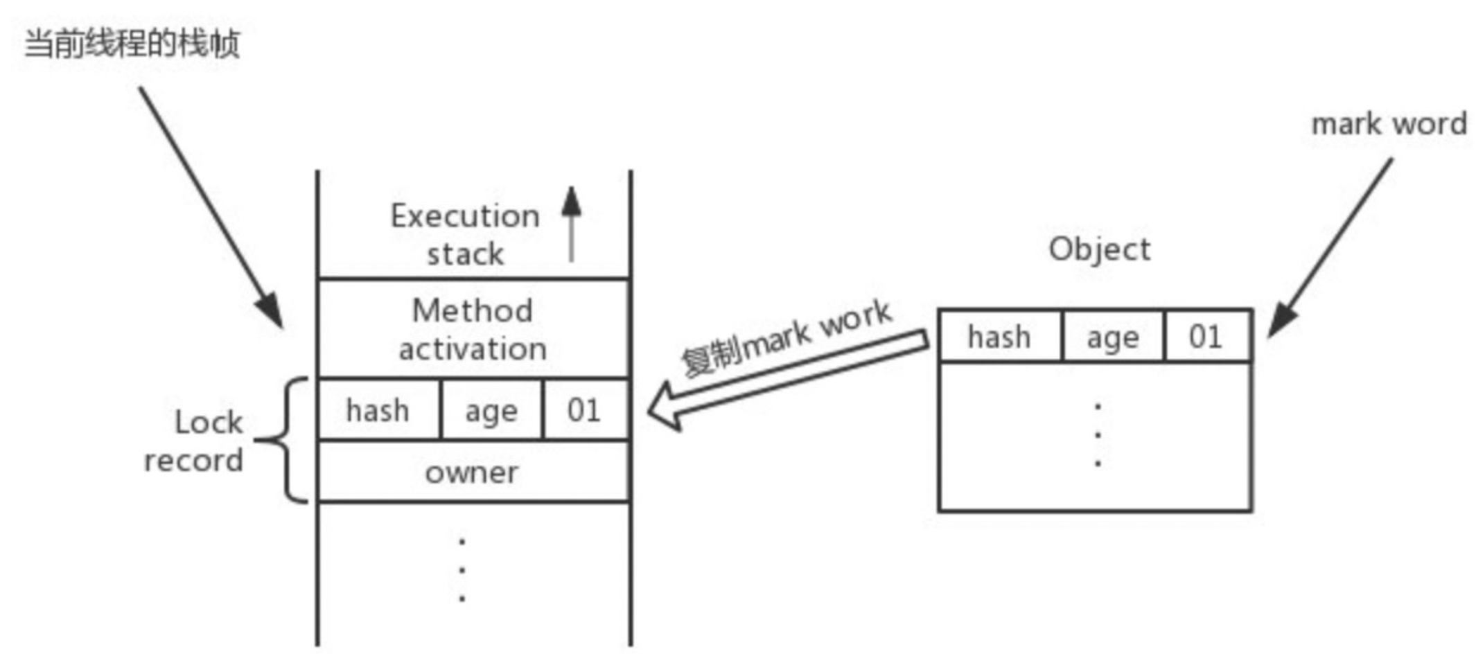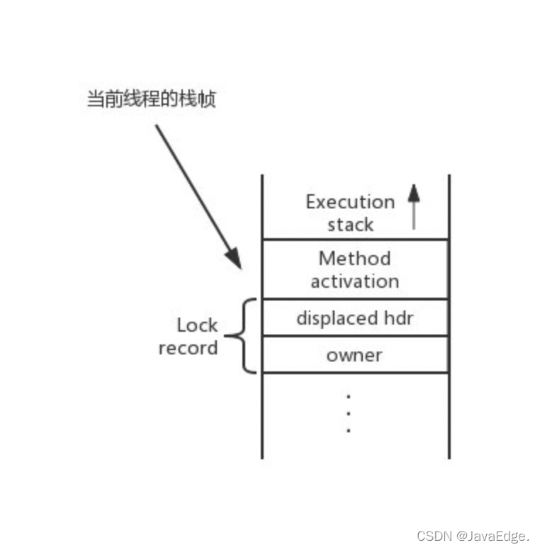 第一步:加锁前,虚拟机需要在当前线程的栈帧中建立锁记录(Lock Record)的空间。