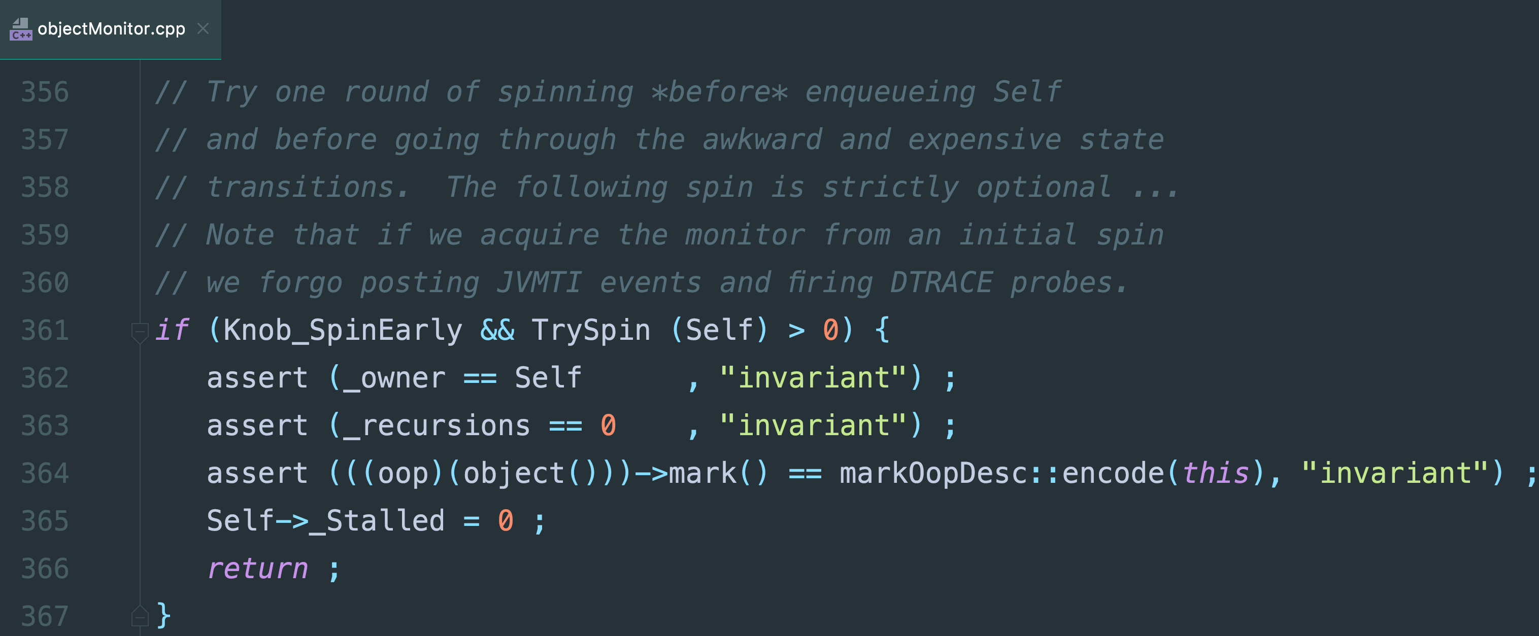 ObjectMonitor * m = mark->monitor();
