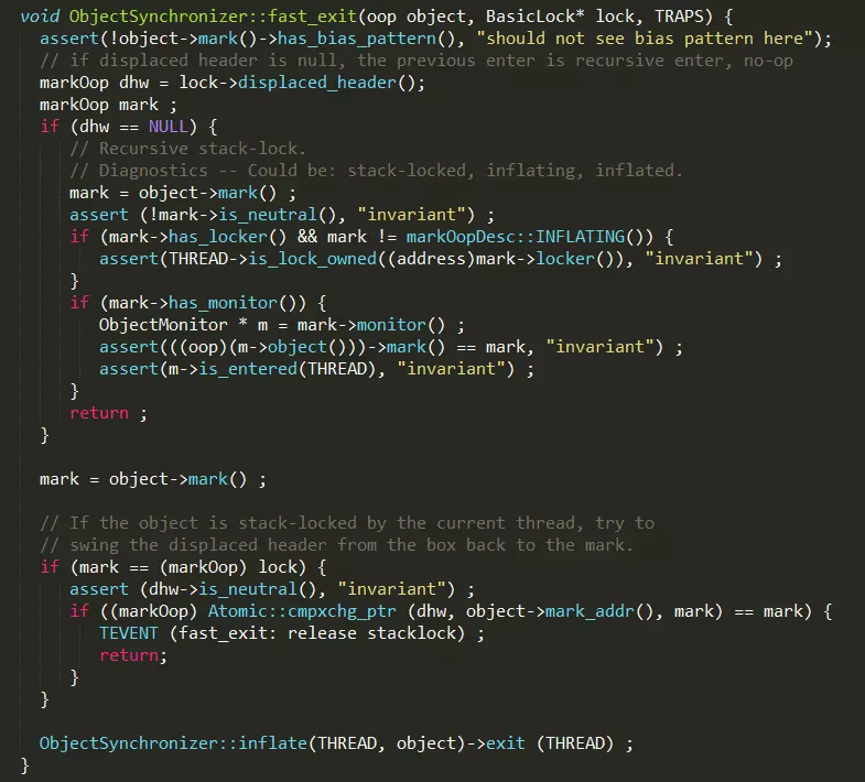 void ObjectSynchronizer::fast_exit(oop object, BasicLock* lock, TRAPS) {