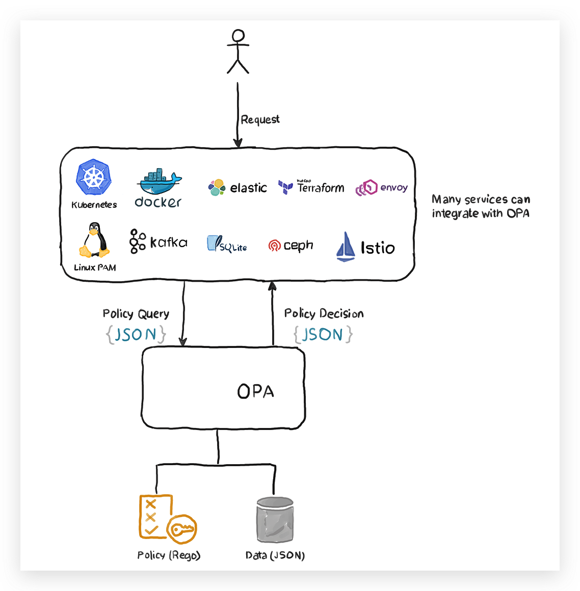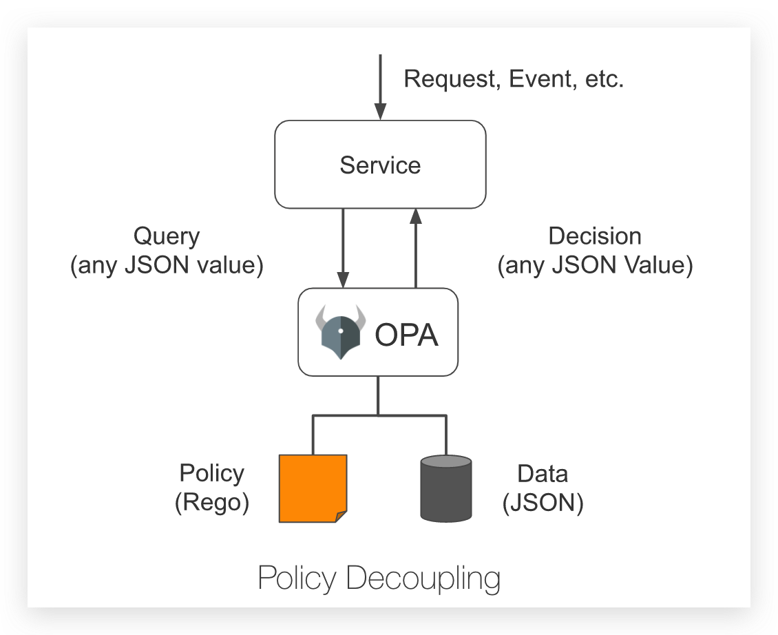OPA 将策略决策与策略执行分离。当您的软件需要做出策略决策时,它会查询 OPA 并提供结构化数据(例如 JSON)作为输入。 OPA 接受任意结构化数据作为输入。
