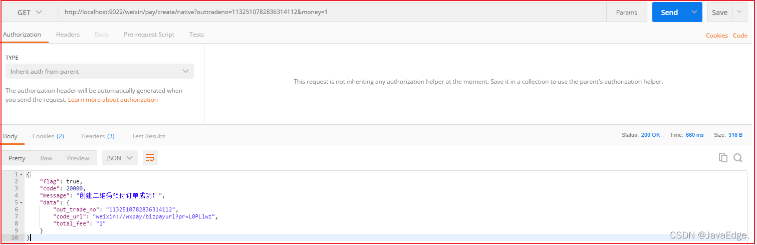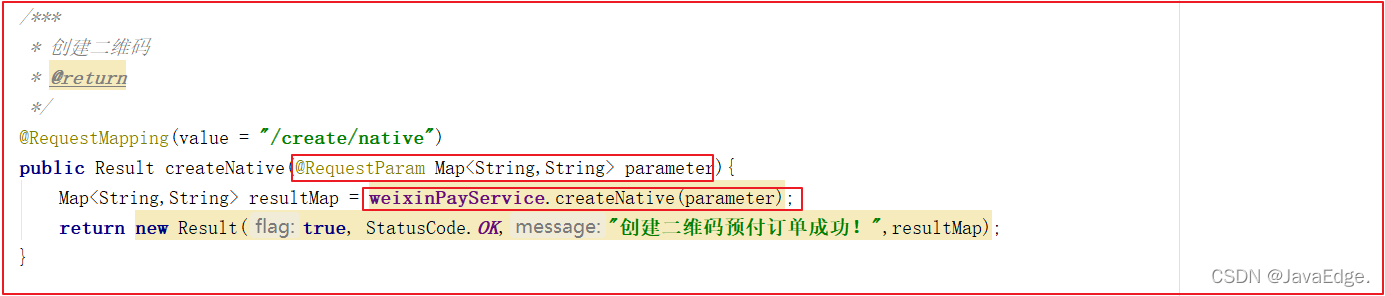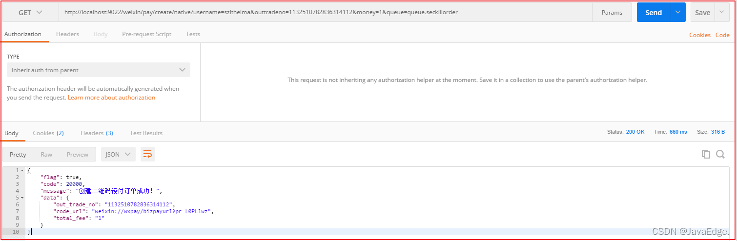 用户创建二维码,可以先查询用户的秒杀订单抢单信息,然后再发送请求到支付微服务中创建二维码,将订单编号以及订单对应的金额传递到支付微服务:/weixin/pay/create/native。