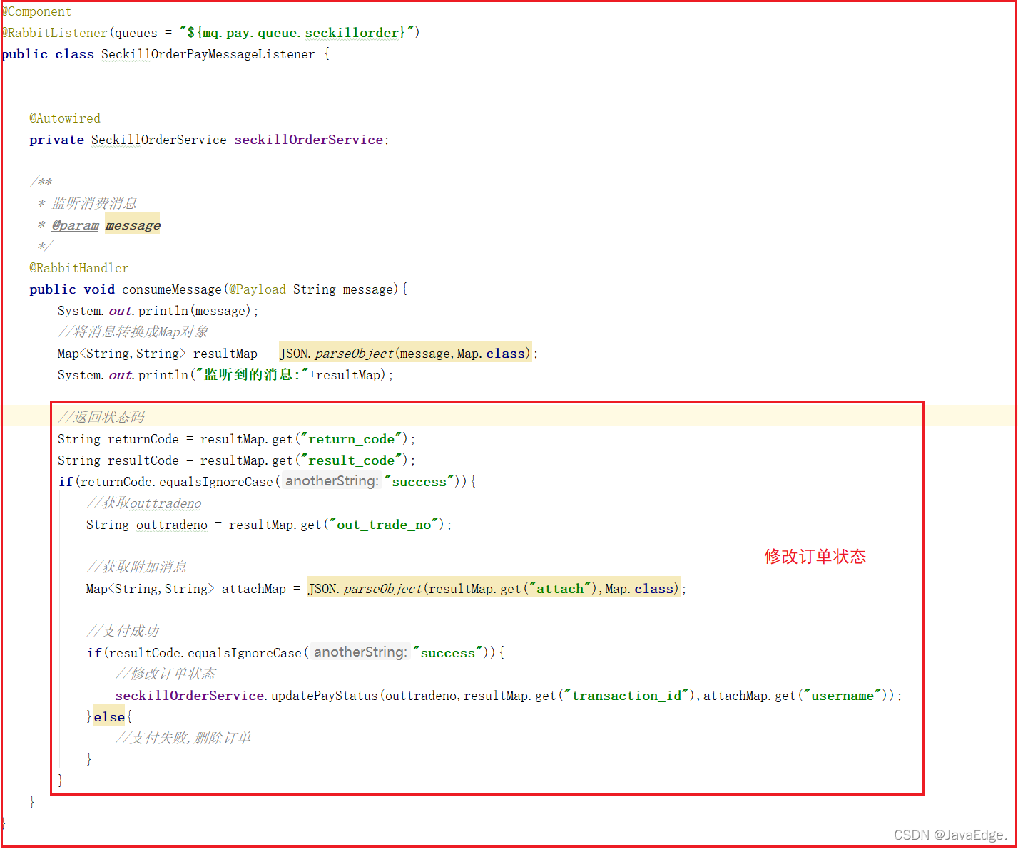 支付回调这一块代码已经实现了,但之前实现的是订单信息的回调数据发送给MQ,指定了对应队列,不过现在需要实现的是秒杀信息发送给指定队列,所以之前的代码那块需要动态指定队列。