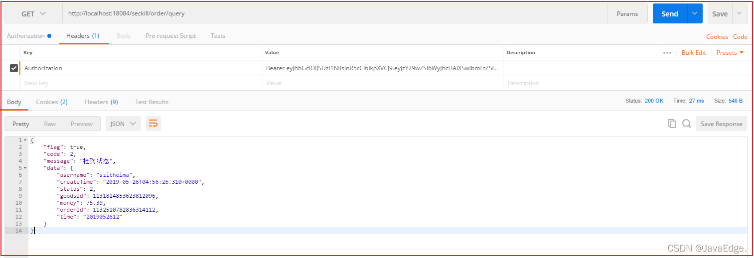 完成秒杀下订单后,进入支付页面,此时前端会每3s向后台发送一次请求,判断当前用户订单是否完成支付: