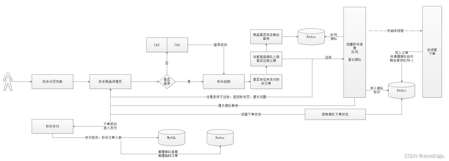 重复排队:一个人抢购商品,若未支付,不准重复排队抢购 -