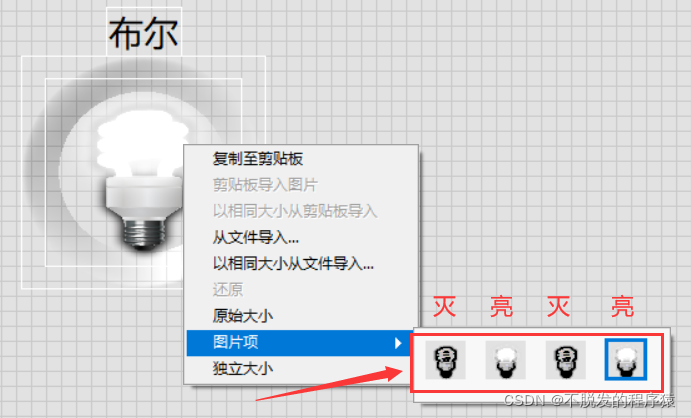 第4步:选中控件,点击鼠标右键,选择:“图片项”,可见目前控件的开关显示状态,如下图所示: