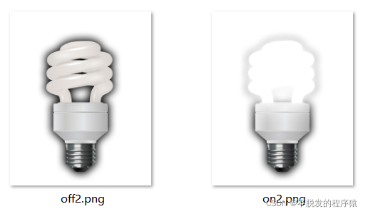 在开始制作前需要制作或者下载两张大小相同的png格式的控件图片,一张作为控件为ture时的状态,一张作为控件状态为false时的图片。例如,我下载的亮、灭LED等的照片,如下所示: