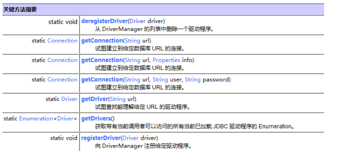 事实上,一般我们操作Driver,获取Connection对象都是交给DriverManager统一管理的。DriverManger可以注册和删除加载的驱动程序,可以根据给定的url获取符合url协议的驱动Driver或者是建立Conenction连接,进行数据库交互。