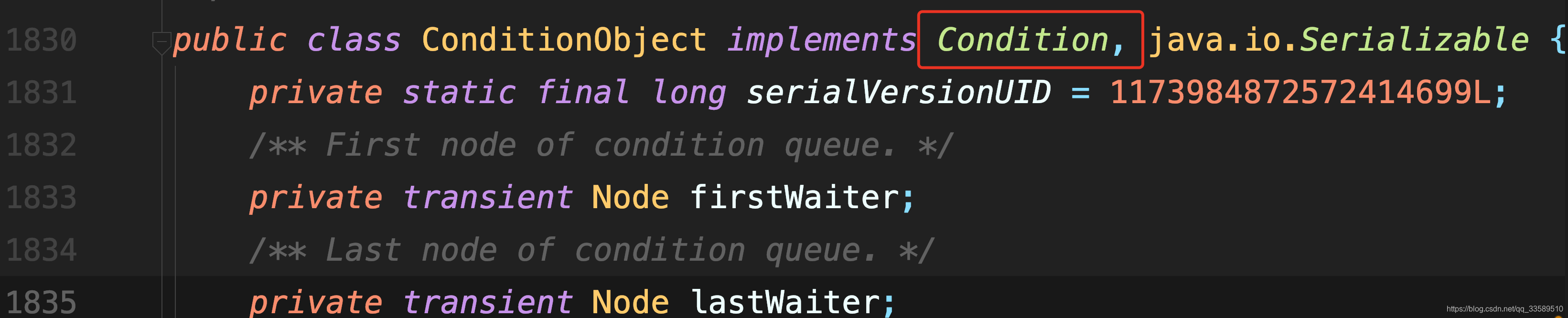 - 条件队列 ConditionObject 实现了 Condition 接口