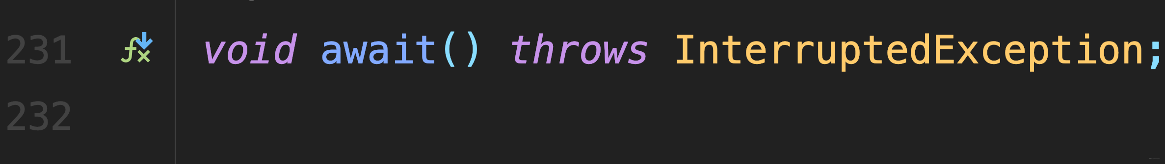 与此 Condition 相关联的锁被原子释放,并且出于线程调度目的,当前线程被禁用,并且处于休眠状态,直到发生以下四种情况之一: