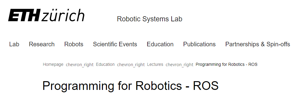 机器人编程基础-ETH ROS 2022-Programming for Robotics