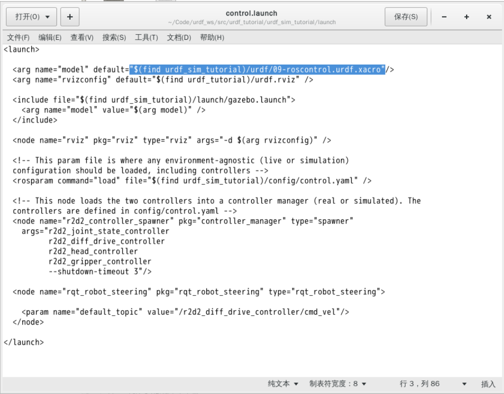 <arg name="model" default="$(find urdf_tutorial)/urdf/r2d2.xacro"/>