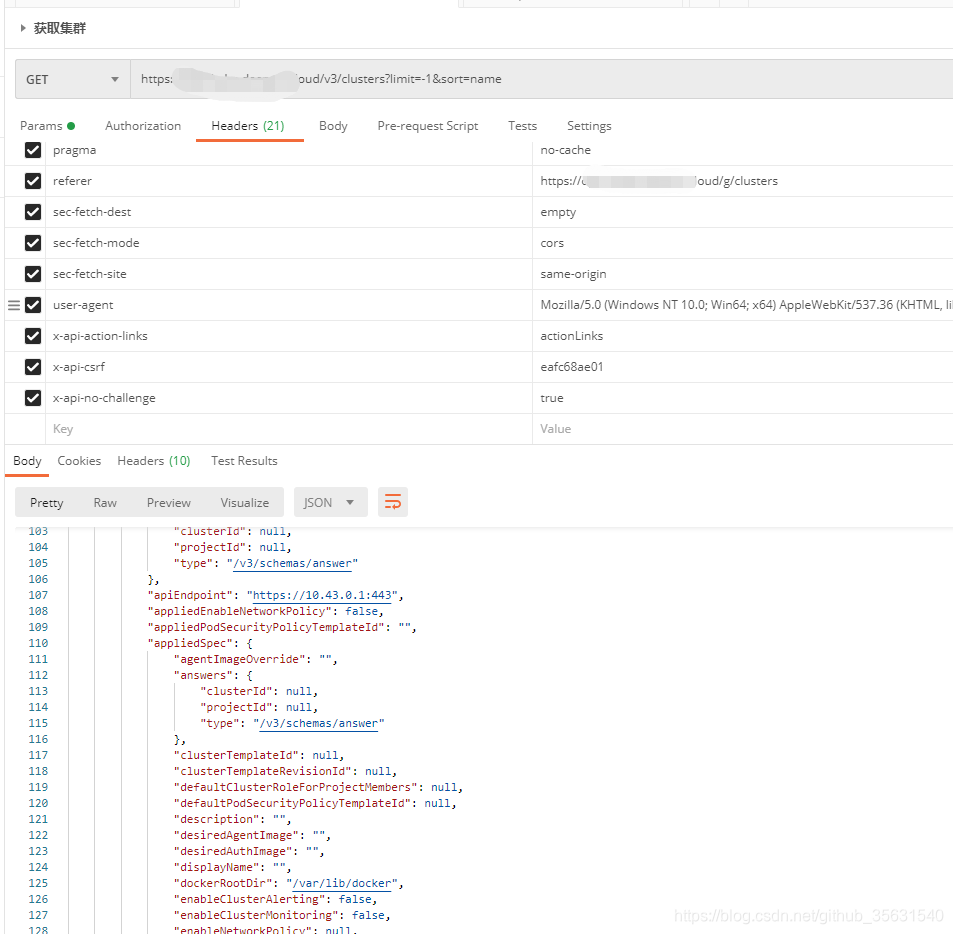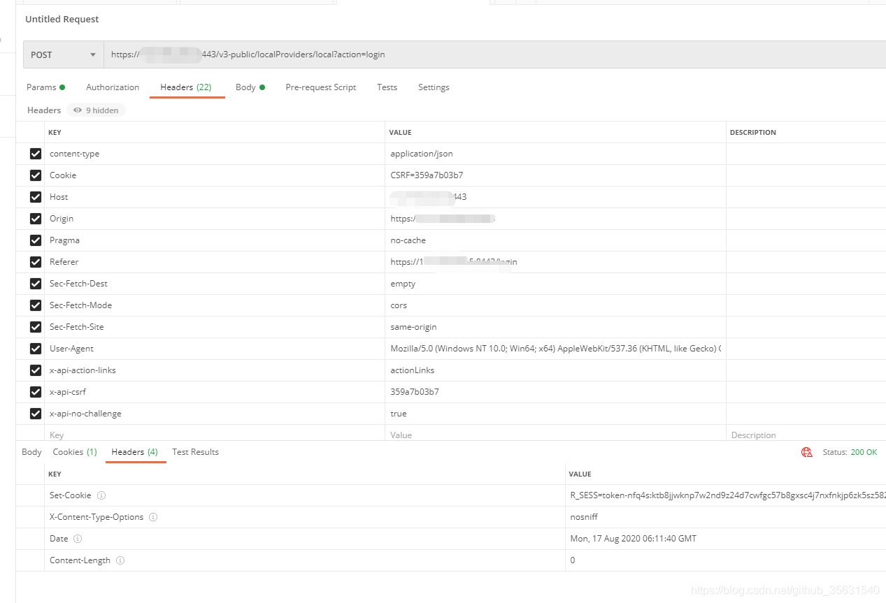 登录接口,没有返回值, 但设置了Cookie R_SESS是一个很重要的字段,在rancher调用接口时都要有该字段
