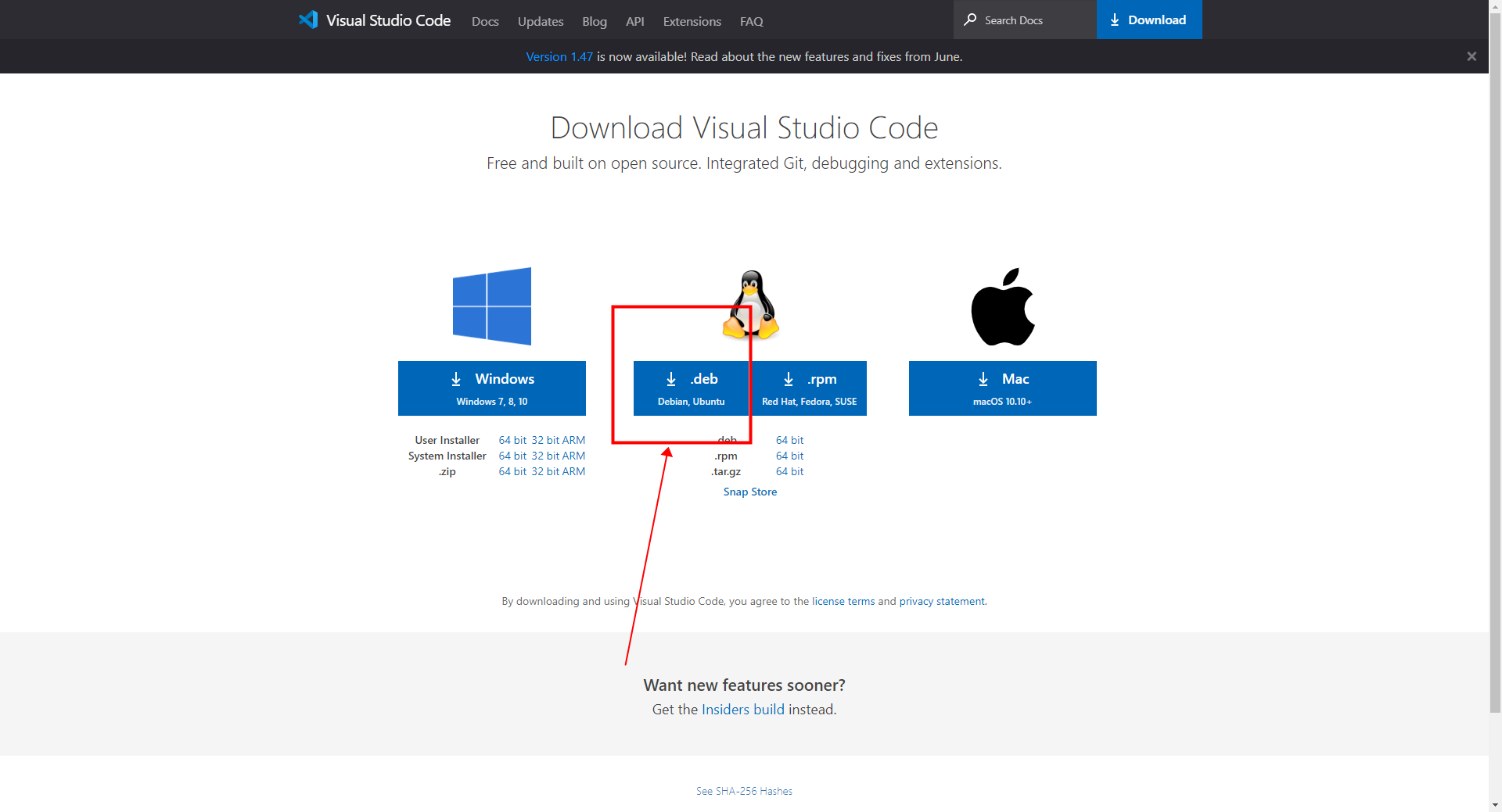sudo dpkg -i code_1.47.3-1595520028_amd64.deb