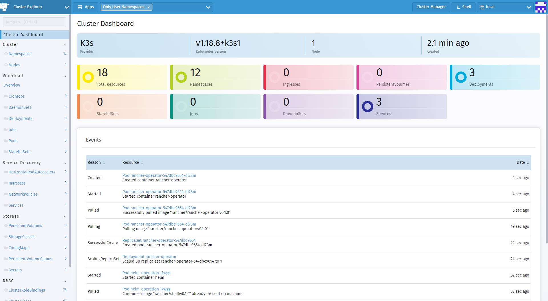 使用 rancher 最新版的dashboard管理本地集群