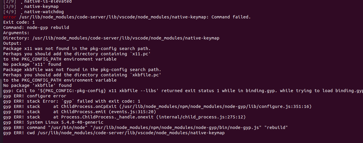 sudo npm install -g code-server --unsafe-perm=true --allow-root