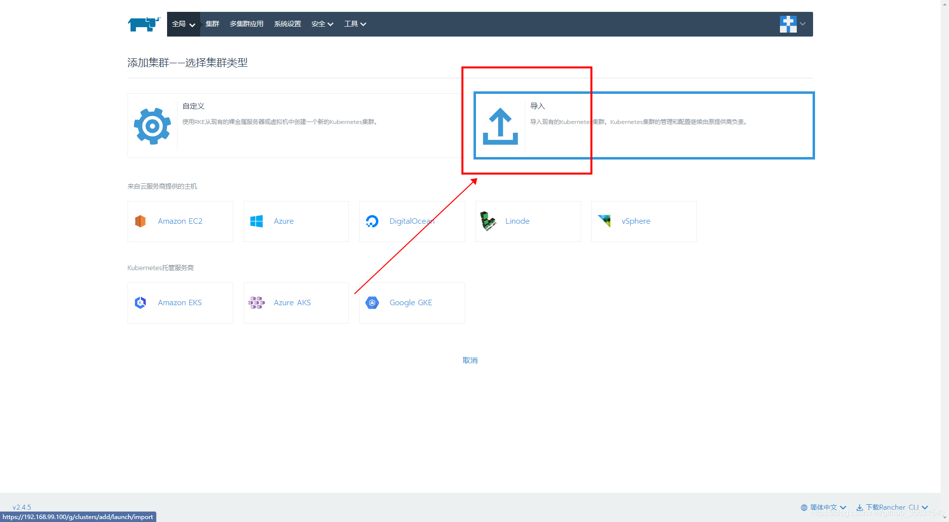 使用rancher管理minikube创建的集群教程