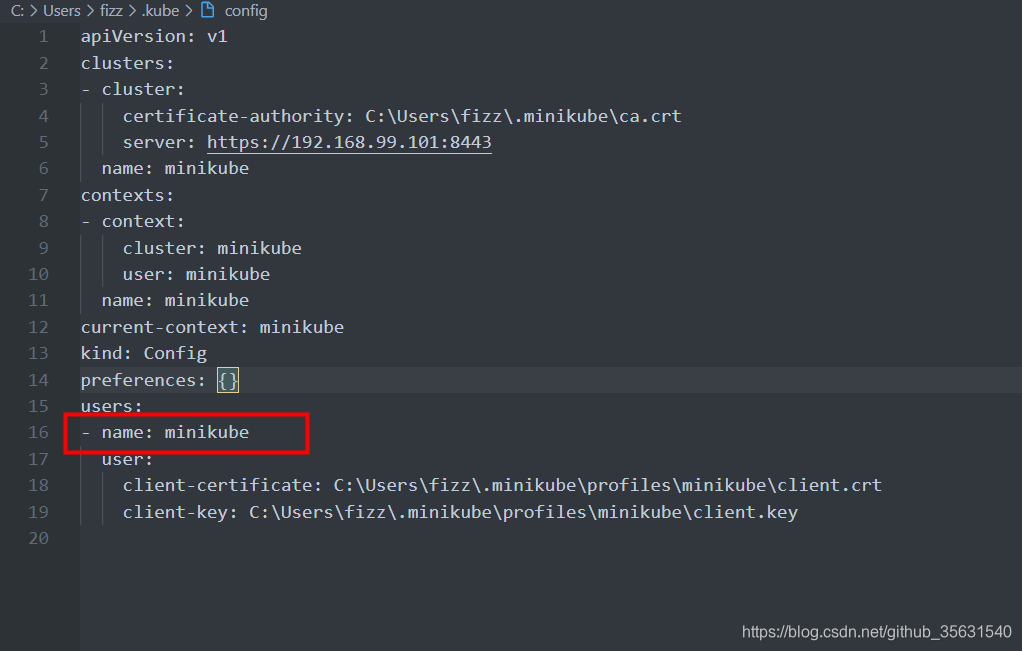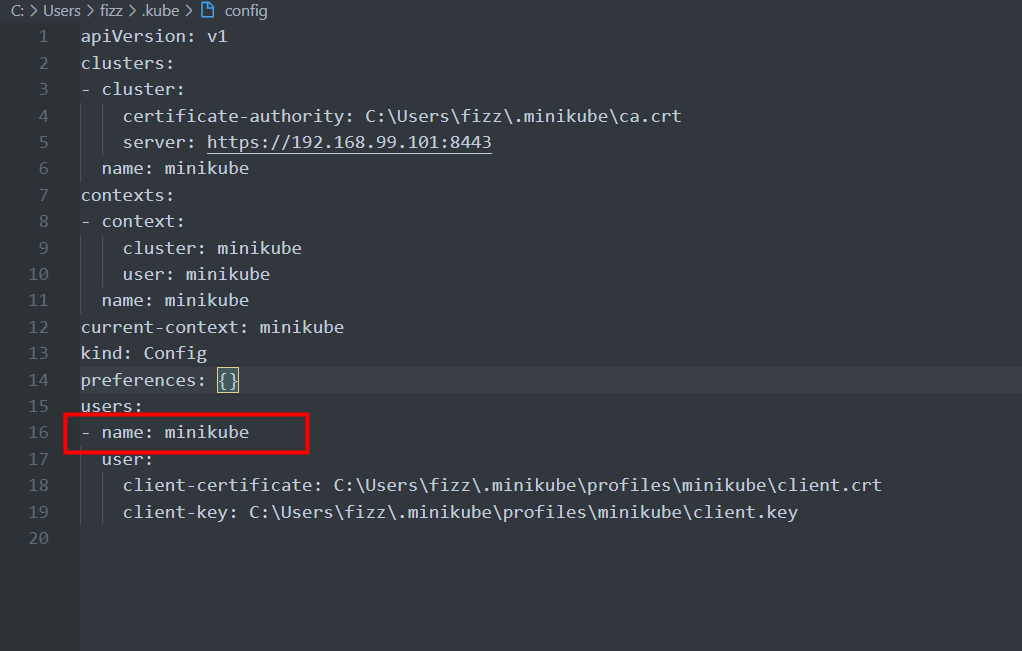 那么用kubectl配置文件中配置的执行用户替换[USER_ACCOUNT]。一般是minikube 默认安装的minikube 存放在这里的