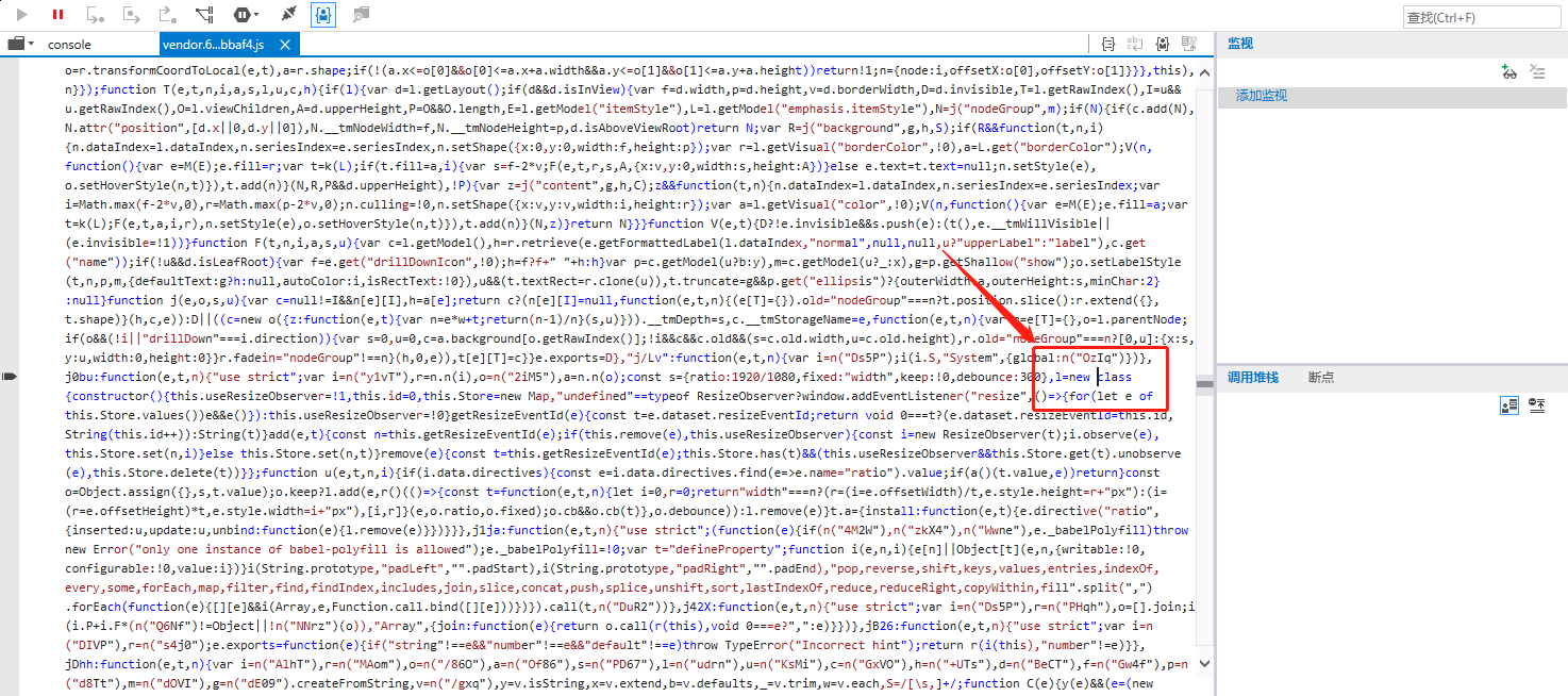这里是压缩后的js,整体就1行代码, 并且在控制台看代码,光标不会煽动,很难找.