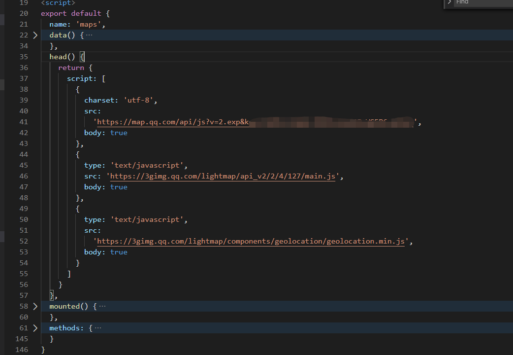 head() { return { script: [ { charset: 'utf-8', src:'https://map.qq.com/api/js?v=2.exp&key=3', body: true }, ...